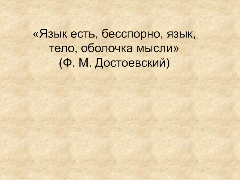 Слайд 10«Язык есть, бесспорно, язык, тело, оболочка мысли»