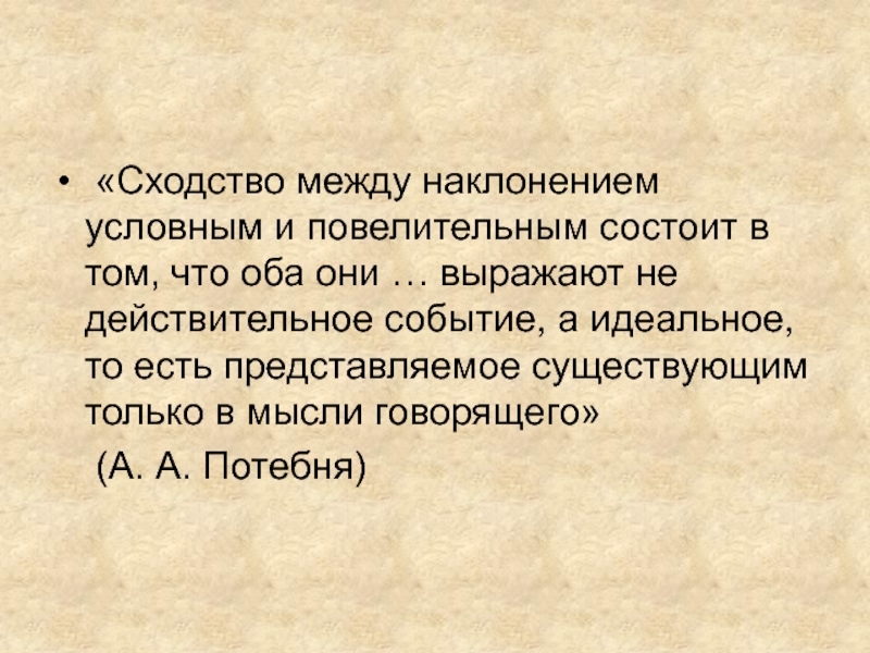 Слайд 21 «Сходство между наклонением условным и повелительным состоит в том,