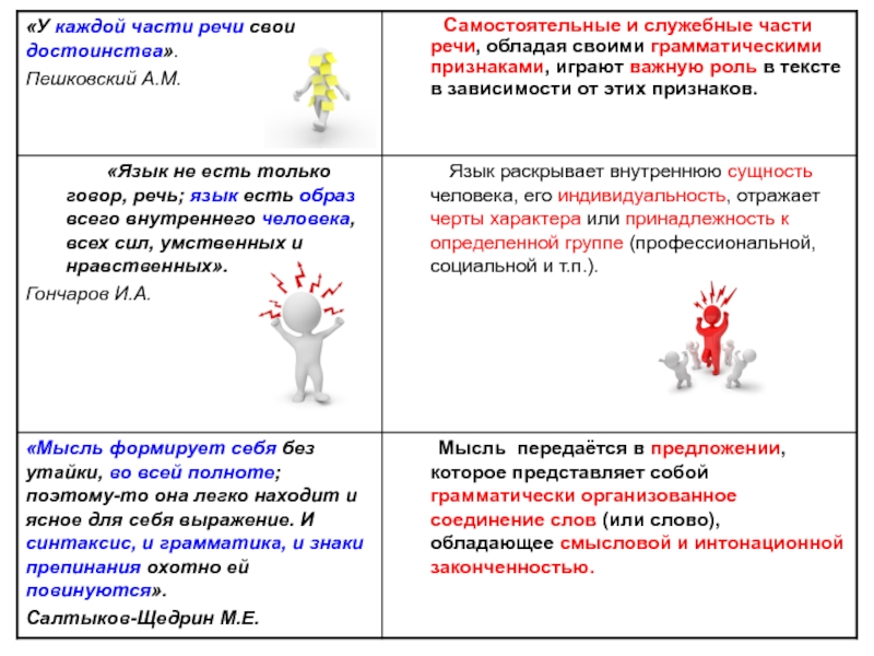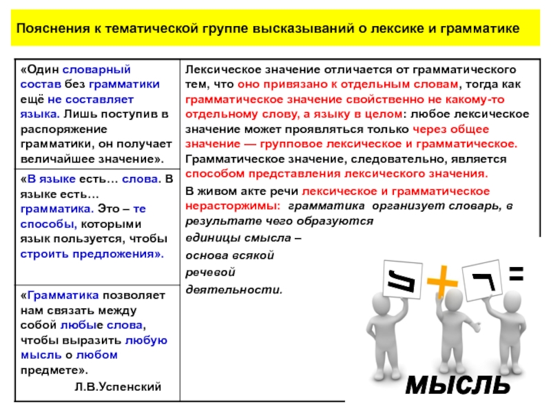 Пояснения к тематической группе высказываний о лексике и грамматикеЛГ=мысль