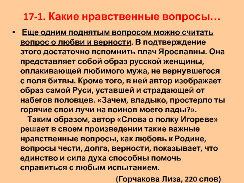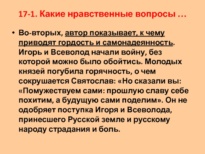 Слайд 3417-1. Какие нравственные вопросы решает в своем произведении автор «Слова».