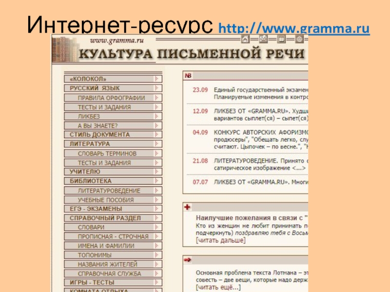 Слайд 45Интернет-ресурс http://www.gramma.ru