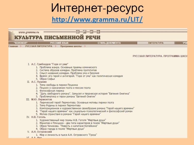 Слайд 46Интернет-ресурс http://www.gramma.ru/LIT/