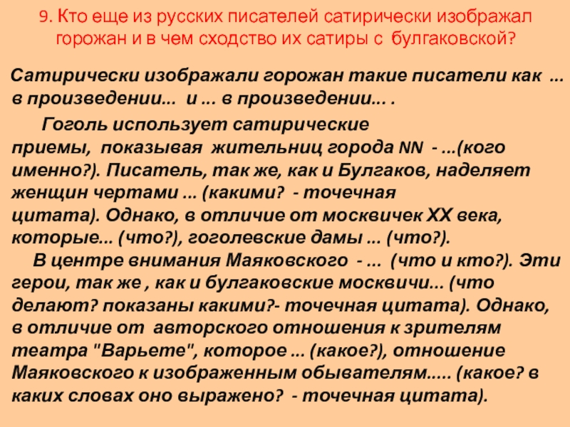 9. Кто еще из русских писателей сатирически изображал горожан и в чем сходство их сатиры с булгаковской?