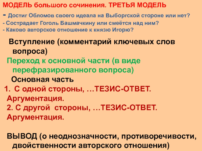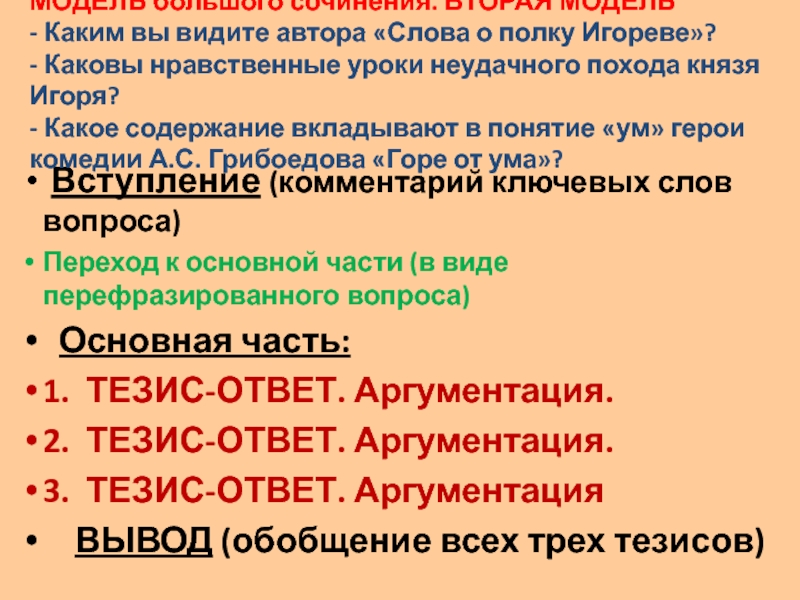 Слайд 37МОДЕЛЬ большого сочинения. ТРЕТЬЯ МОДЕЛЬ