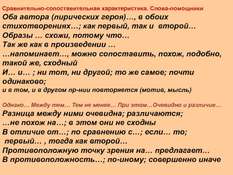Слайд 4Сравнительно-сопоставительная характеристика. Слова-помощники
