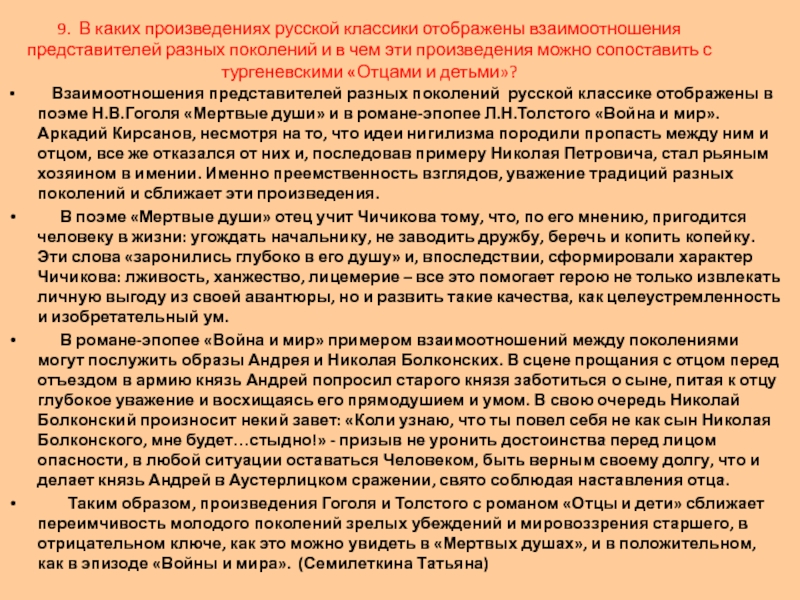 Какие русские писатели-классики обращались так или иначе к проблемам «отцов и детей»?