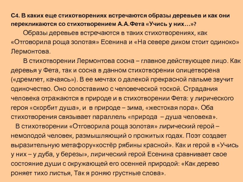 Слайд 17С4. В каких еще стихотворениях встречаются образы деревьев и как