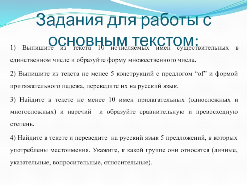 Слайд 31) Выпишите из текста 10 исчисляемых имен существительных в единственном