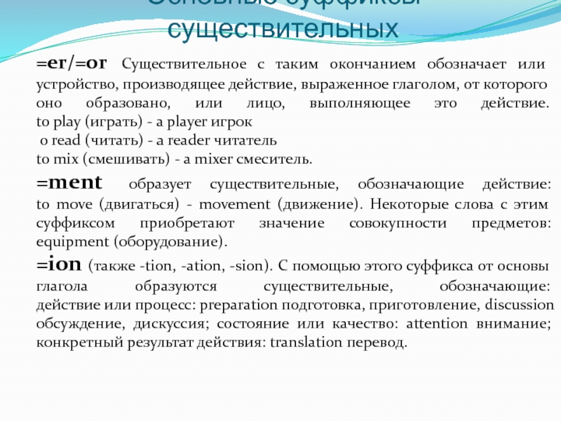 =er/=or Существительное с таким окончанием обозначает или устройство,
