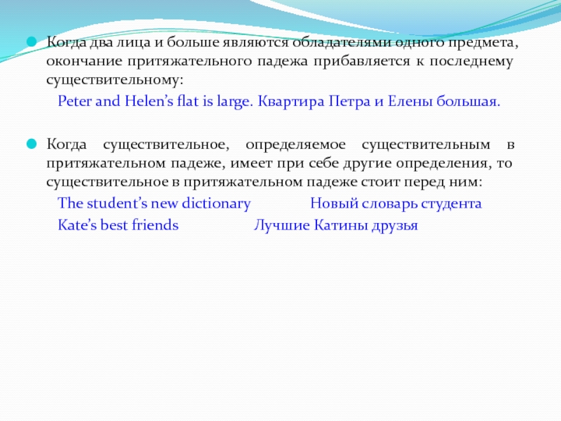 Слайд 19Когда два лица и больше являются обладателями одного предмета, окончание