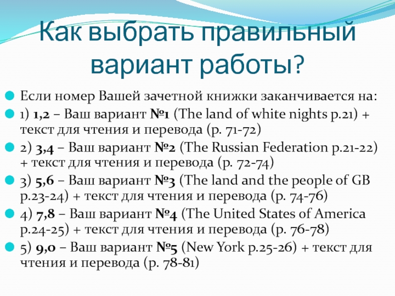 Слайд 2Если номер Вашей зачетной книжки заканчивается на: