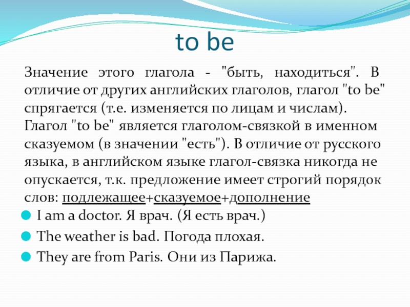 Слайд 34Спряжение глагола to be в настоящем, прошедшем и будущем временах