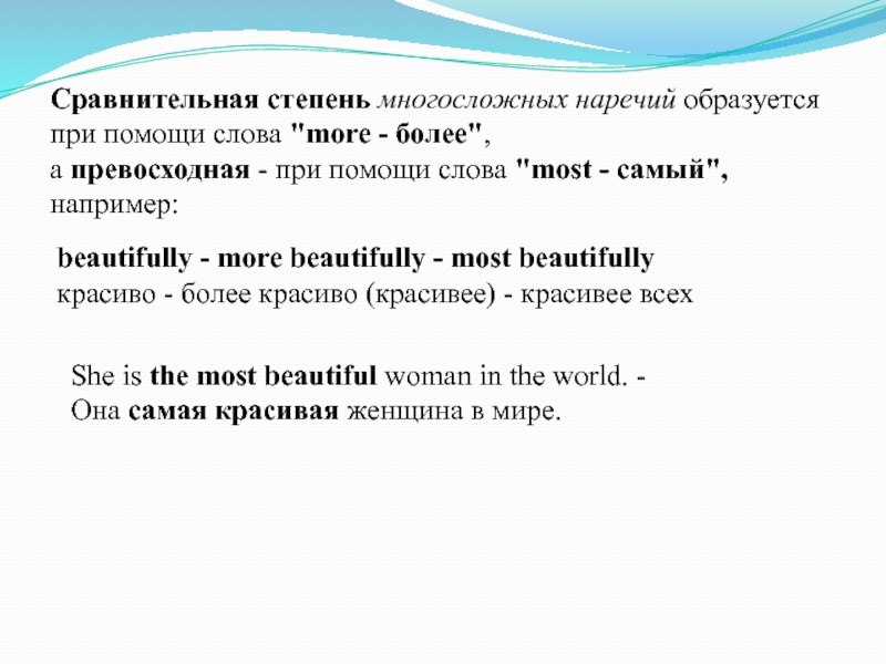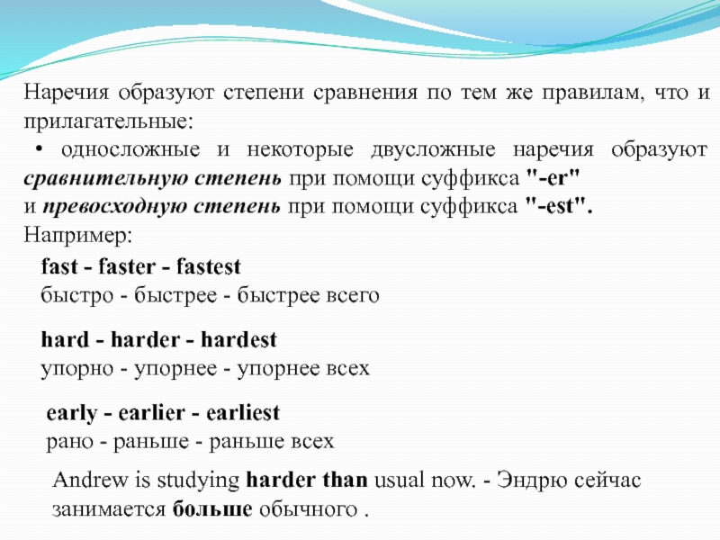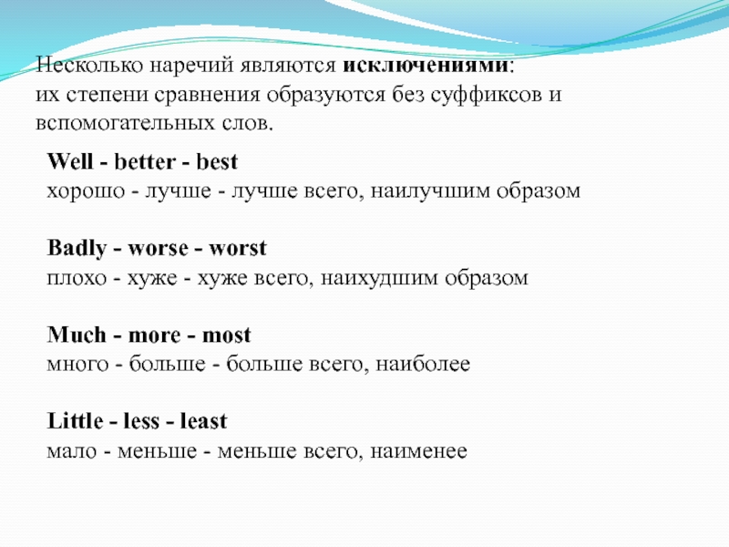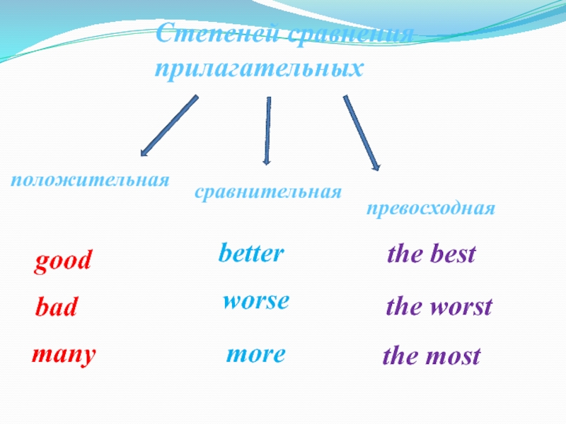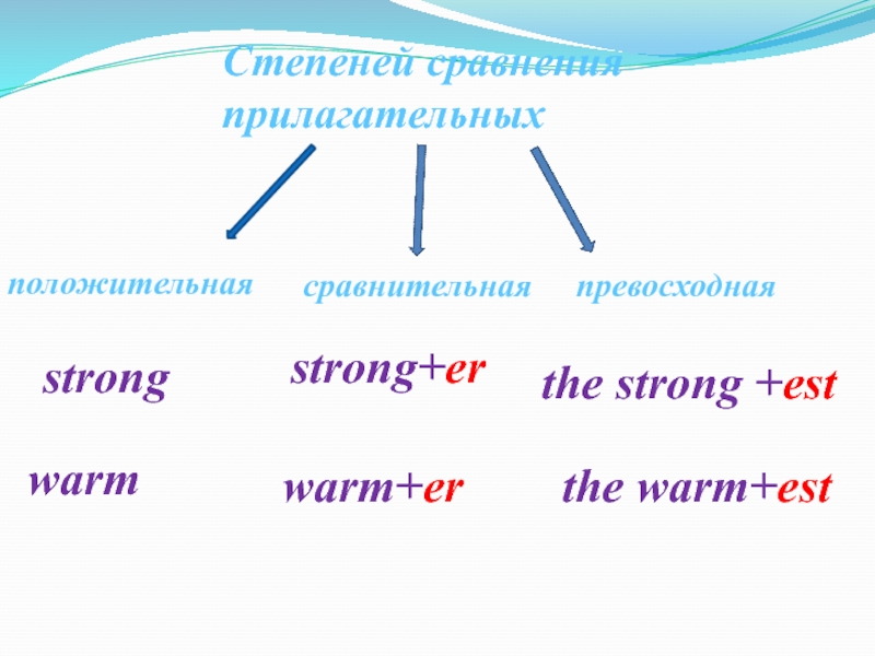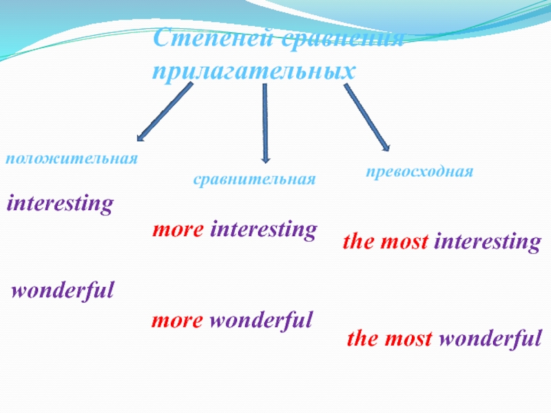 3) Найдите в тексте не менее 10 имен прилагательных (односложных и многосложных) и наречий и образуйте сравнительную и превосходную степень.