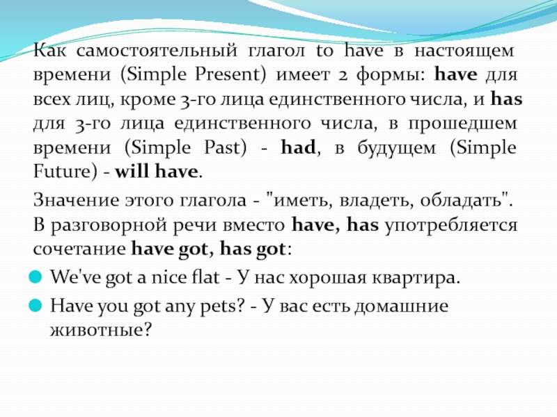 Слайд 35Как самостоятельный глагол to have в настоящем времени (Simple Present)