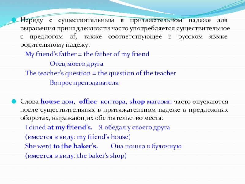 Слайд 20Наряду с существительным в притяжательном падеже для выражения принадлежности часто