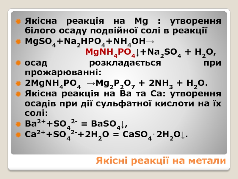 Якісна реакція на Mg : утворення білого