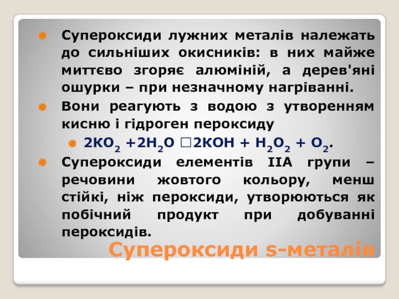 Слайд 19Пероксиди лужних металів