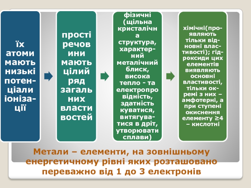 Слайд 2Метали – елементи, на зовнішньому енергетичному рівні яких розташовано переважно