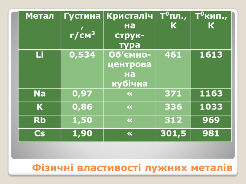Слайд 6Фізичні властивості лужних металів