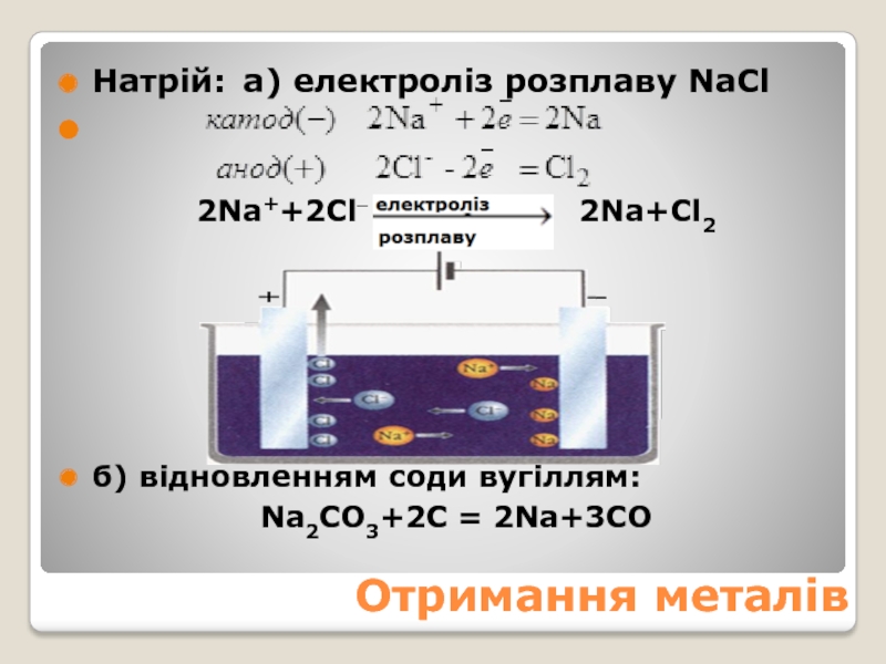 Натрій: а) електроліз розплаву NaCl