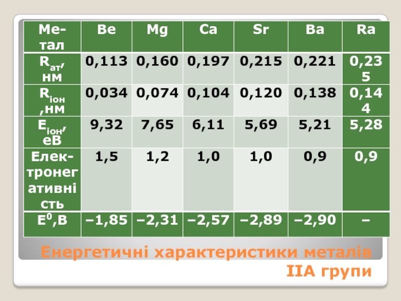 Слайд 10Енергетичні характеристики металів ІІА групи