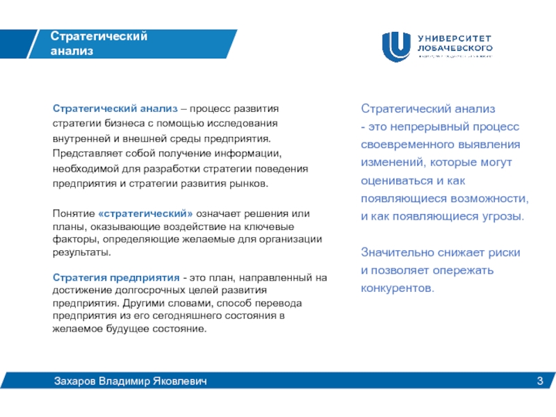 Стратегический анализ – процесс развития стратегии бизнеса с помощью исследования внутренней и внешней среды предприятия. Представляет собой получение информации, необходимой для разработки стратегии поведения предприятия и стратегии развития рынков.