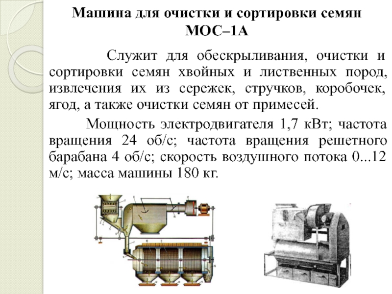 Слайд 40Машина для очистки и сортировки семян МОС–1А