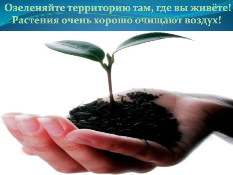 Слайд 10Озеленяйте территорию там, где вы живёте! Растения очень хорошо очищают