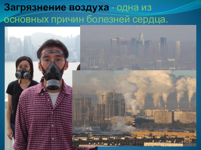 Слайд 4Загрязнение воздуха - одна из основных причин болезней сердца.