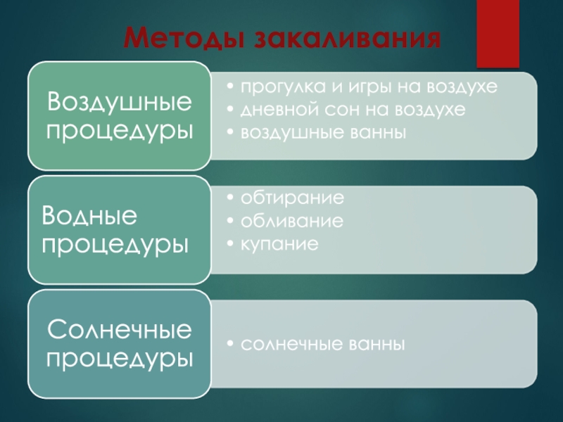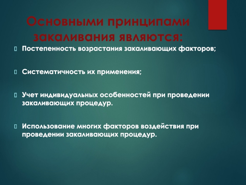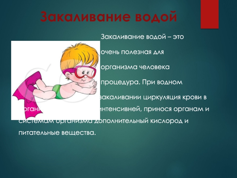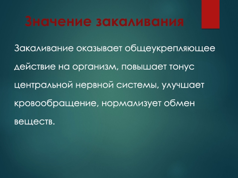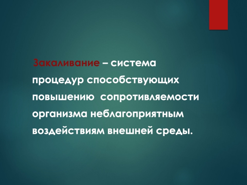 Слайд 4 Закаливание – система процедур способствующих повышению сопротивляемости организма