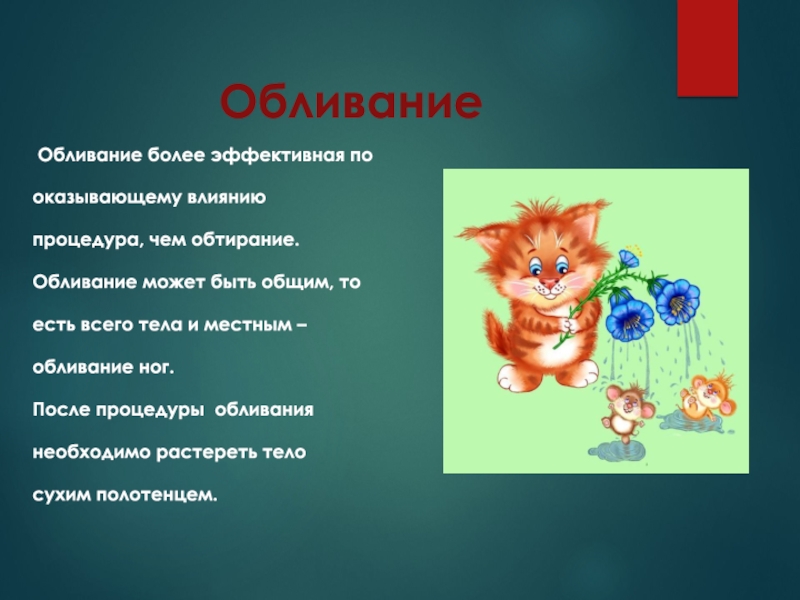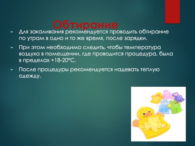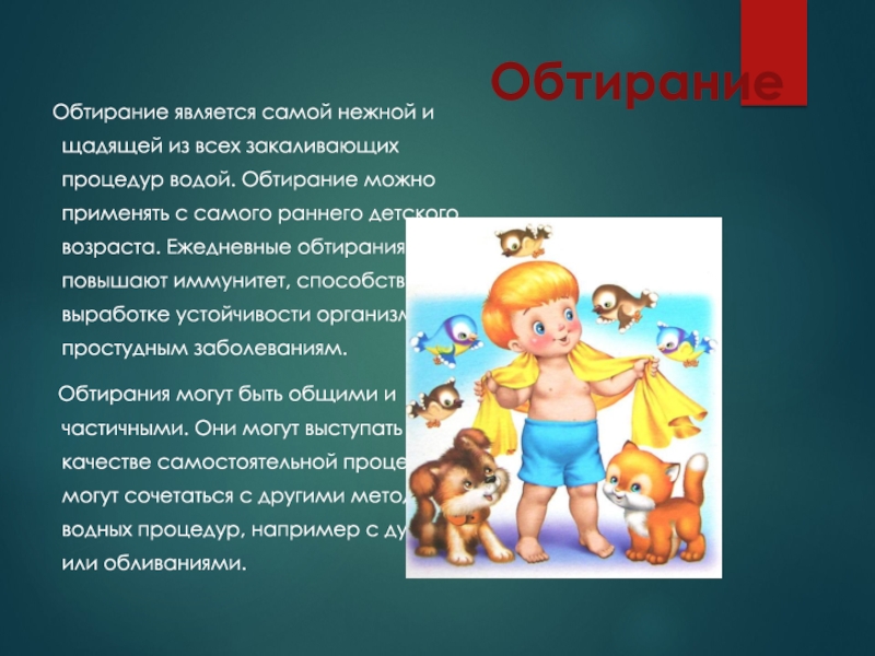 закаливающих процедур водой. Обтирание можно применять с самого раннего детского