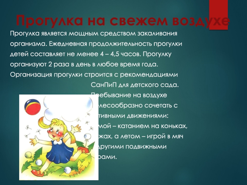 детей составляет не менее 4 – 4,5 часов. Прогулку