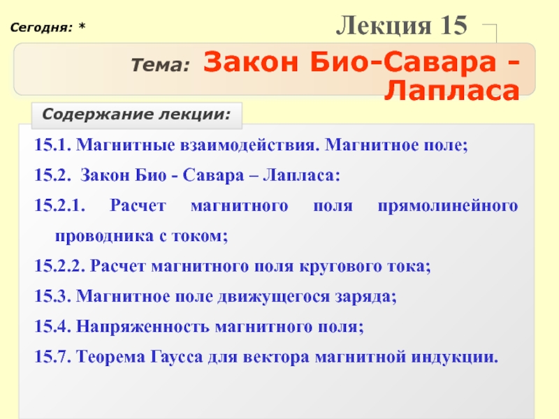 Содержание лекции:
