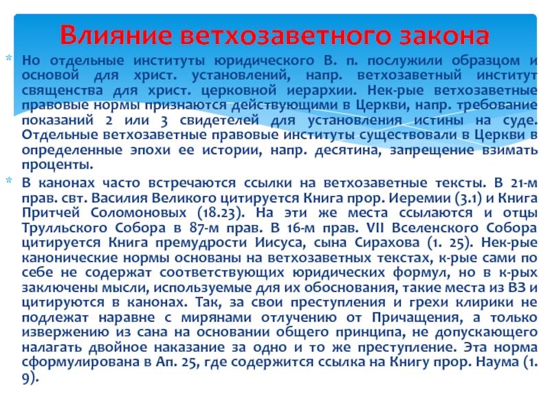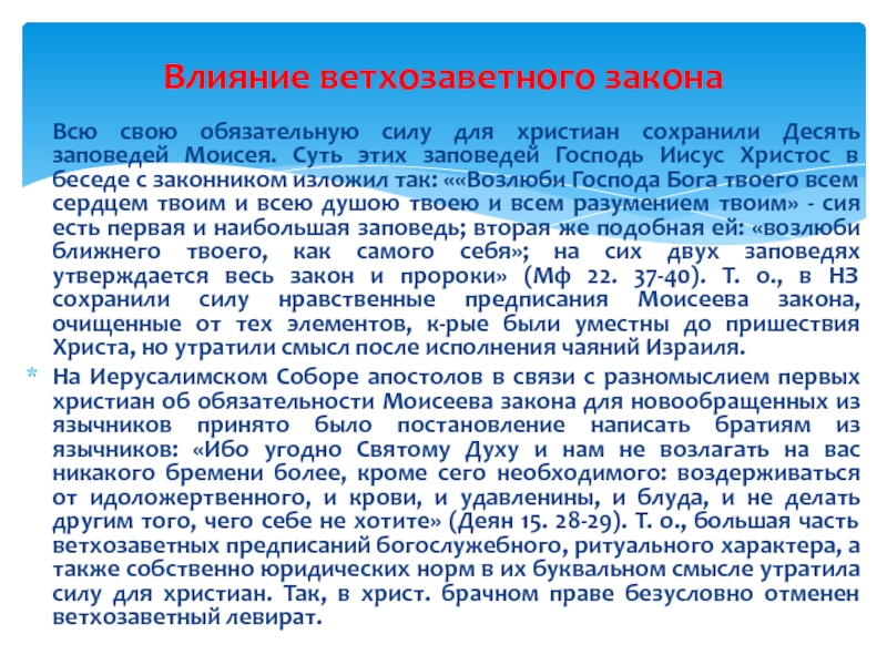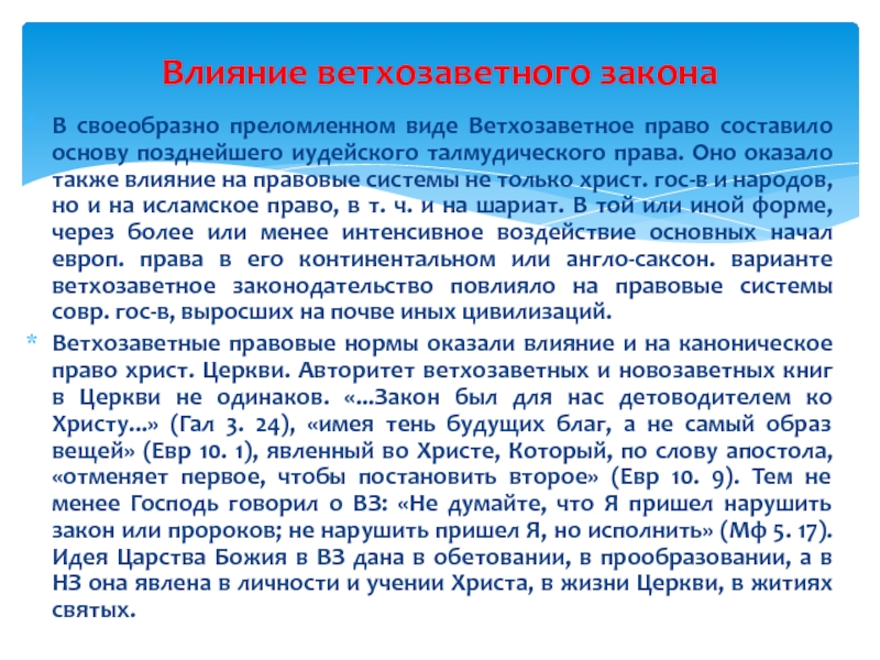 Влияние ветхозаветного закона