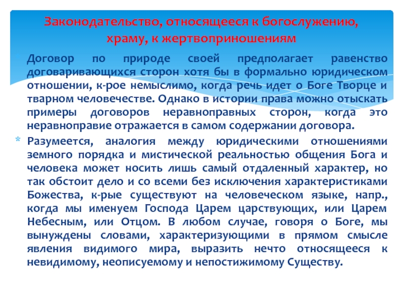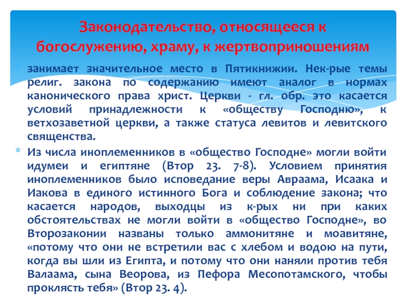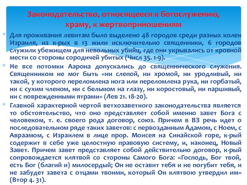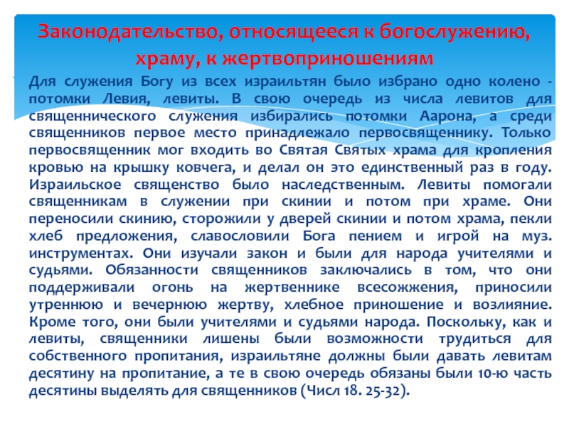 Законодательство, относящееся к богослужению, храму, к жертвоприношениям
