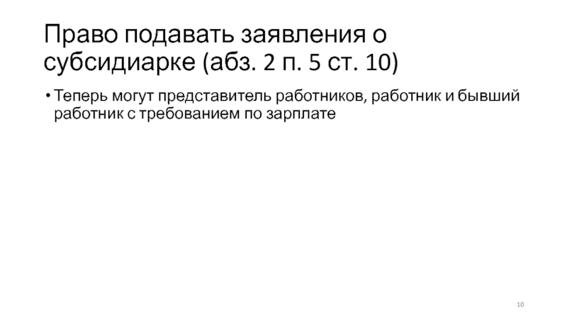 Слайд 10Право подавать заявления о субсидиарке (абз. 2 п. 5 ст.