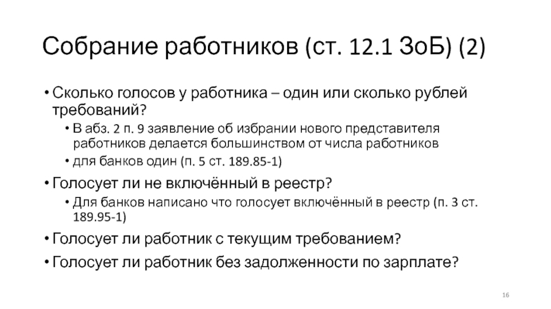 Слайд 16Собрание работников (ст. 12.1 ЗоБ) (2)