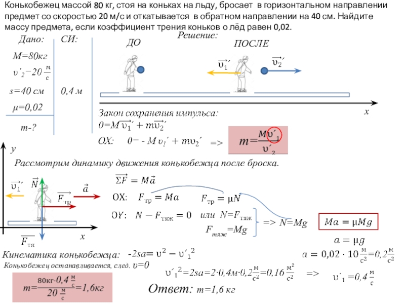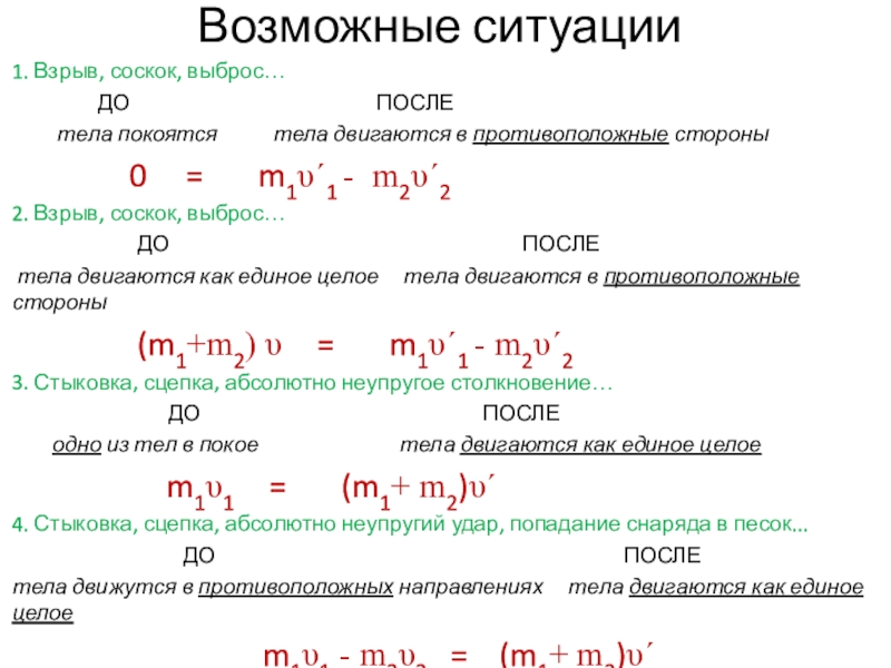 и направление движения тел ДО и ПОСЛЕ.На рисунке укажите направление скоростей тел.