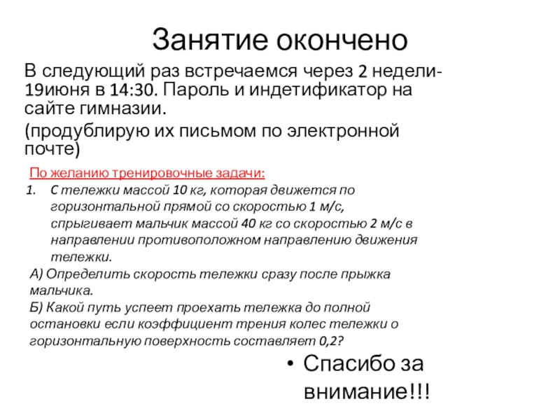 Если необходимо, воспользуйтесь законами динамики, кинематики, ЗСЭ что бы решить задачу относительно искомой величины.