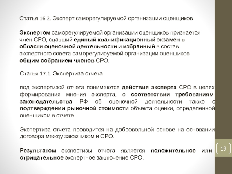 Слайд 19Статья 16.2. Эксперт саморегулируемой организации оценщиков