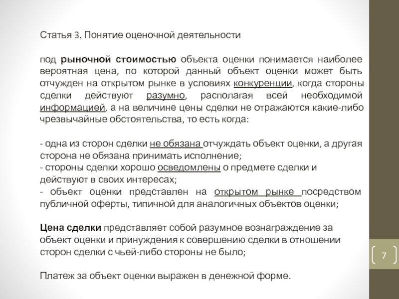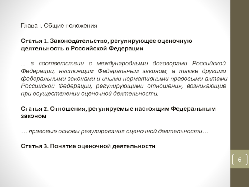 Слайд 7Статья 3. Понятие оценочной деятельности