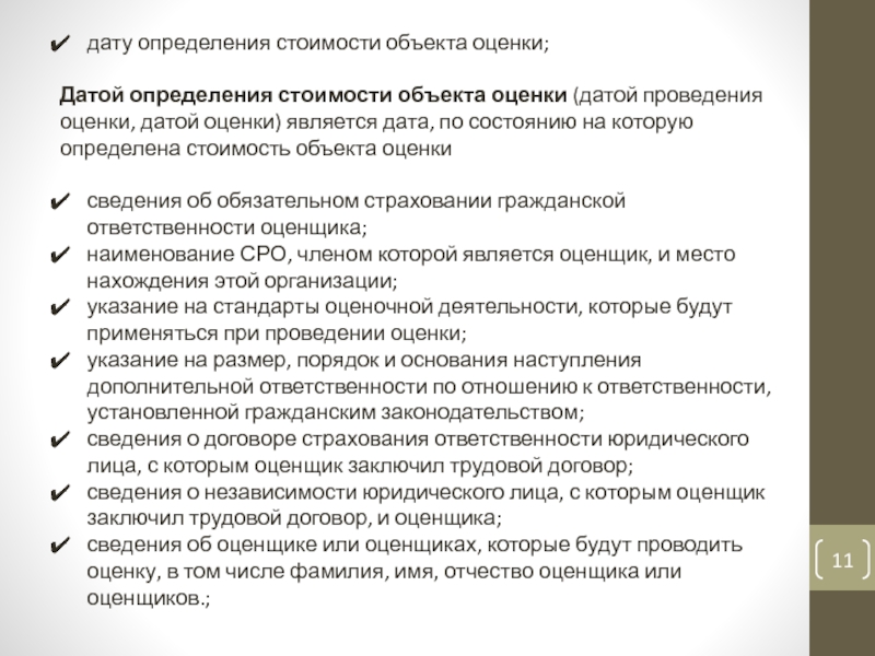 Слайд 11дату определения стоимости объекта оценки;