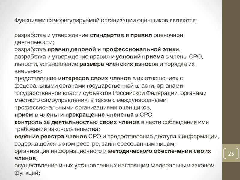 Слайд 25Функциями саморегулируемой организации оценщиков являются: