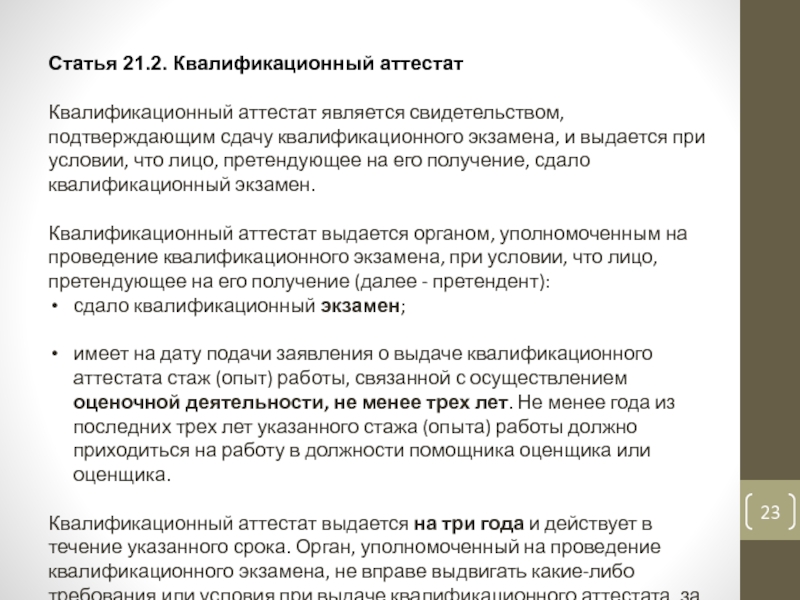 Слайд 23Статья 21.2. Квалификационный аттестат
