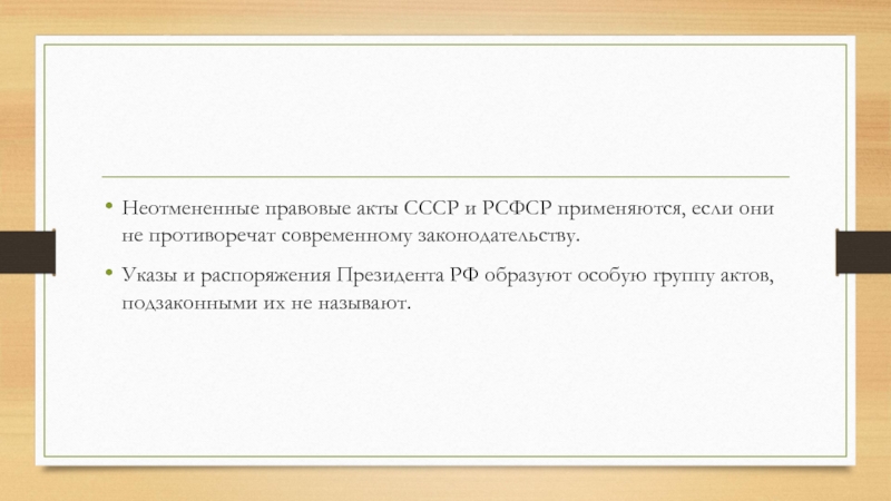 Слайд 9Неотмененные правовые акты СССР и РСФСР применяются, если они не