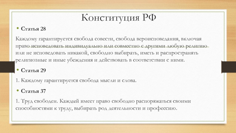 Каждому гарантируется свобода совести, свобода вероисповедания, включая право