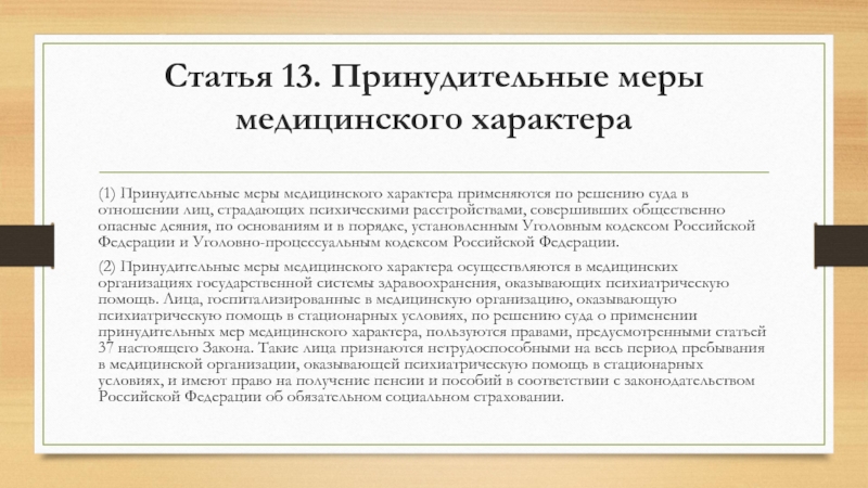 Слайд 20Статья 13. Принудительные меры медицинского характера