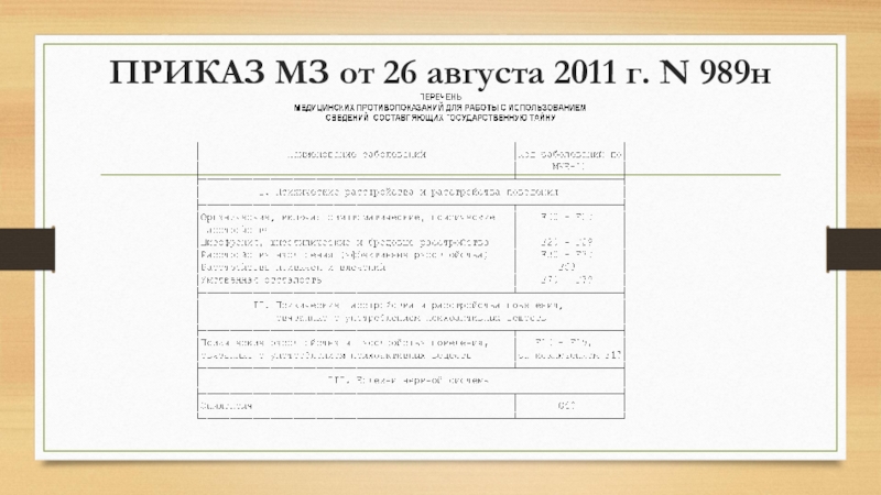 Слайд 35ПРИКАЗ МЗ от 26 августа 2011 г. N 989н