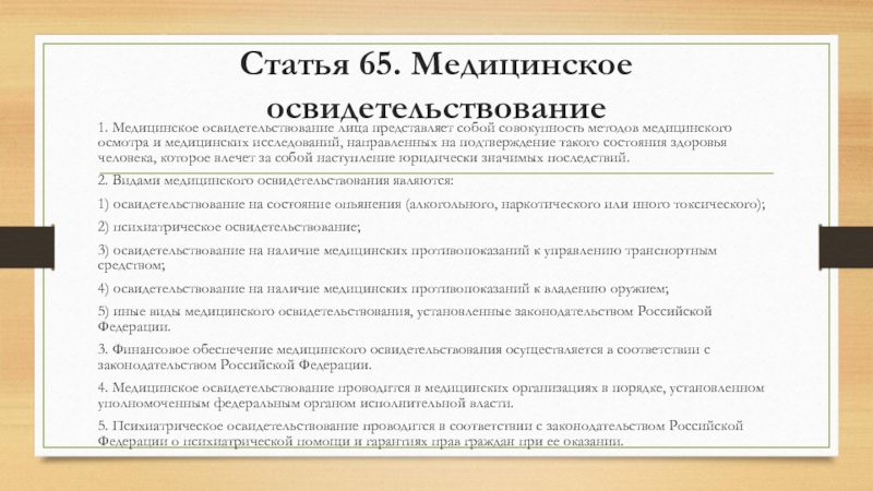 1. Медицинское освидетельствование лица представляет собой совокупность