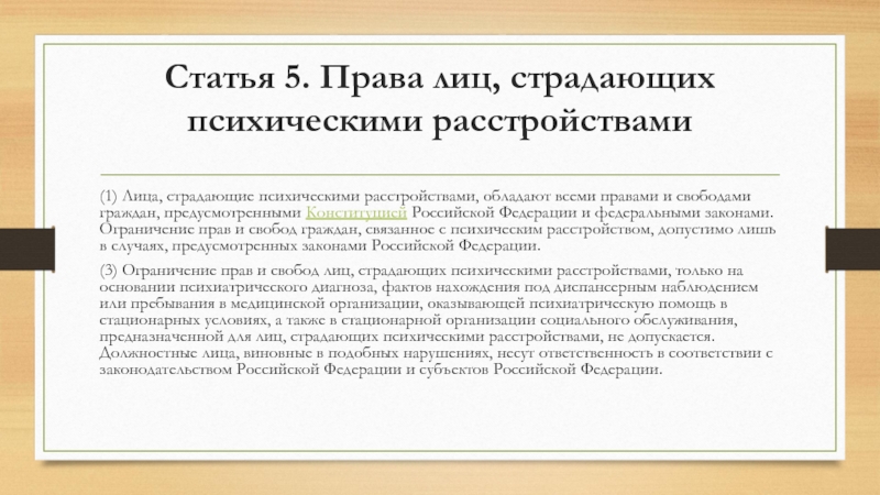 Слайд 19Статья 5. Права лиц, страдающих психическими расстройствами